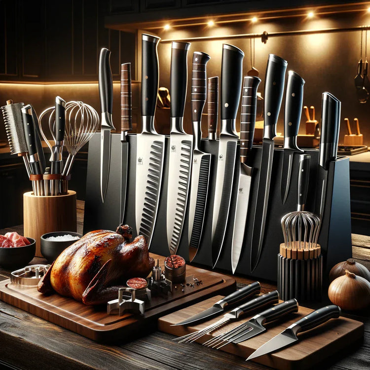 Découvrez "L'Univers du Couteau – Cuisine & BBQ", une collection soigneusement sélectionnée pour répondre aux besoins des chefs professionnels, passionnés de cuisine et amateurs exigeants. Que vous soyez à la recherche d'un couteau japonais ultra-tranchant, d'un couteau de chef polyvalent, d'un set de couteaux haut de gamme ou encore d'accessoires indispensables comme des griffes à viande pour BBQ, vous trouverez ici l'essentiel pour sublimer vos préparations.